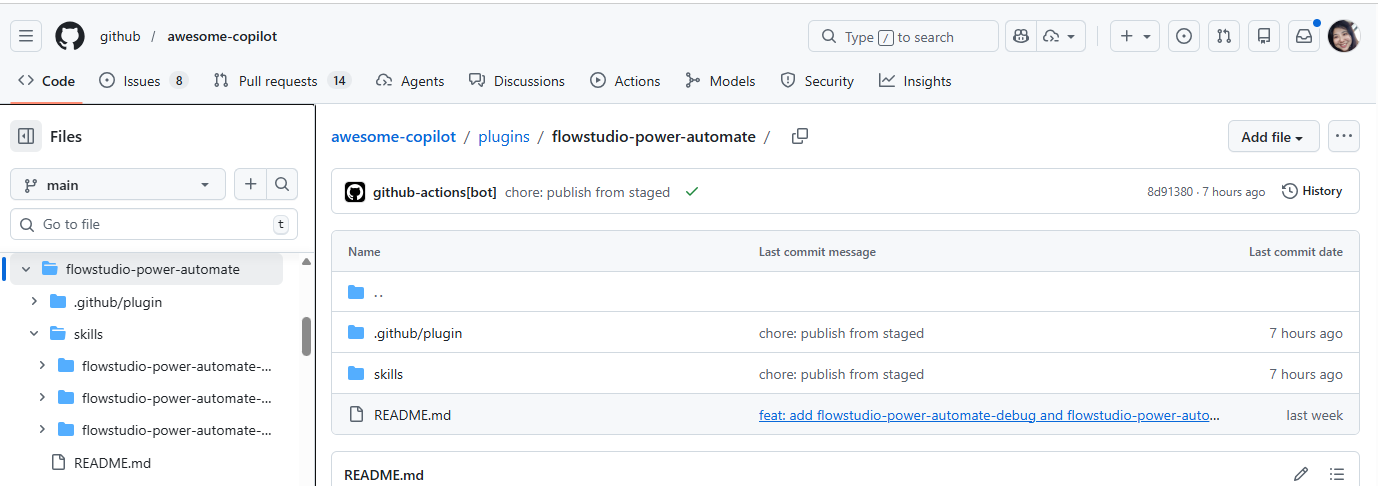 2. Copy the skill folder(s) you want into your project’s .github/skills/ directory. The folder names are: flowstudio-power-automate-mcp/ (foundation), flowstudio-power-automate-debug/ (diagnostics), and flowstudio-power-automate-build/ (flow creation)